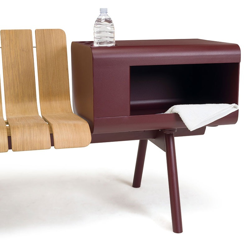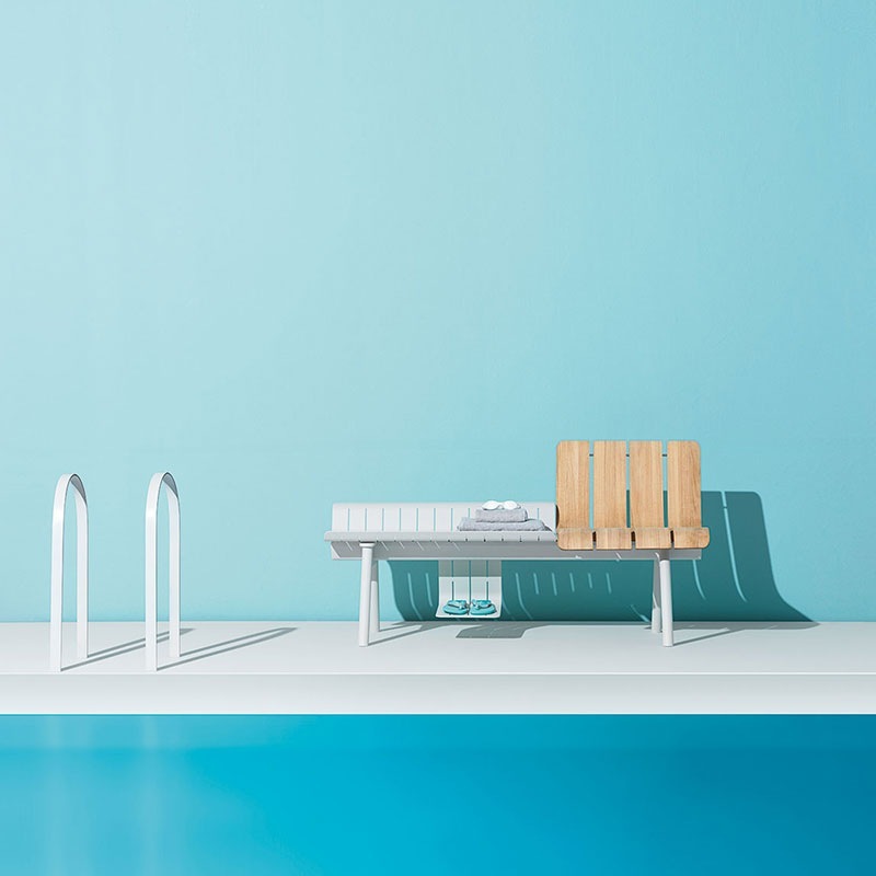 Material Aluminium, pulverbeschichtet und Teak Natur
