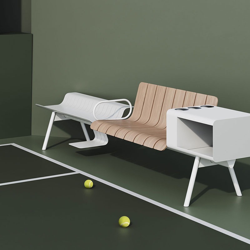 Material Aluminium, pulverbeschichtet und Teak Natur